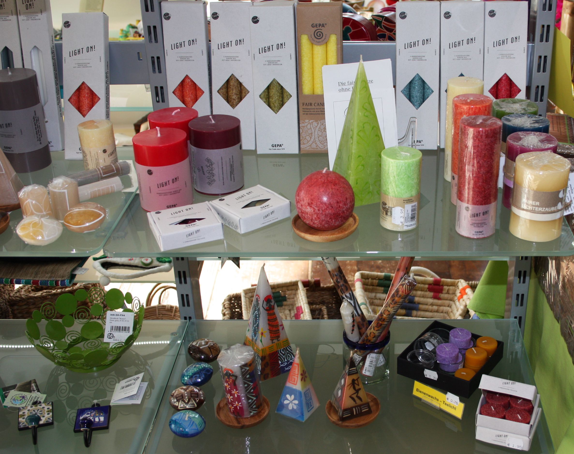 Passend dazu haben wir natürlich auch ein vielfältiges Sortiment an fair gehandelten, in Handarbeit hergestellten Kerzenhaltern aus Capiz, Speckstein, Holz und Draht.